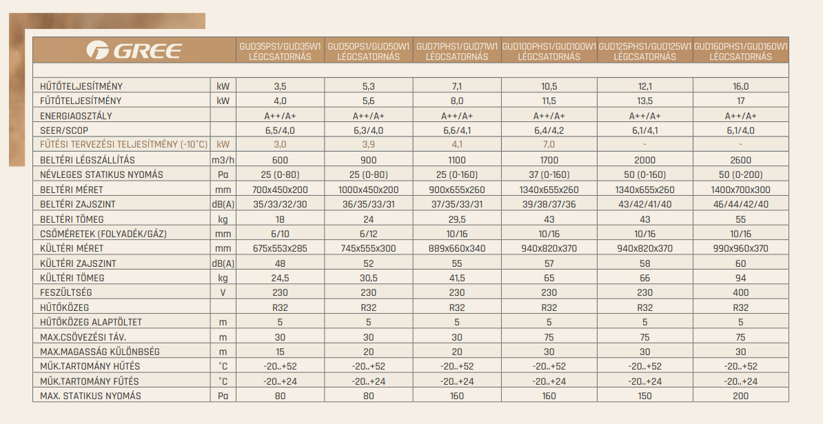 Gree GUD71PS / GUD71W Légcsatornás Split Klíma
