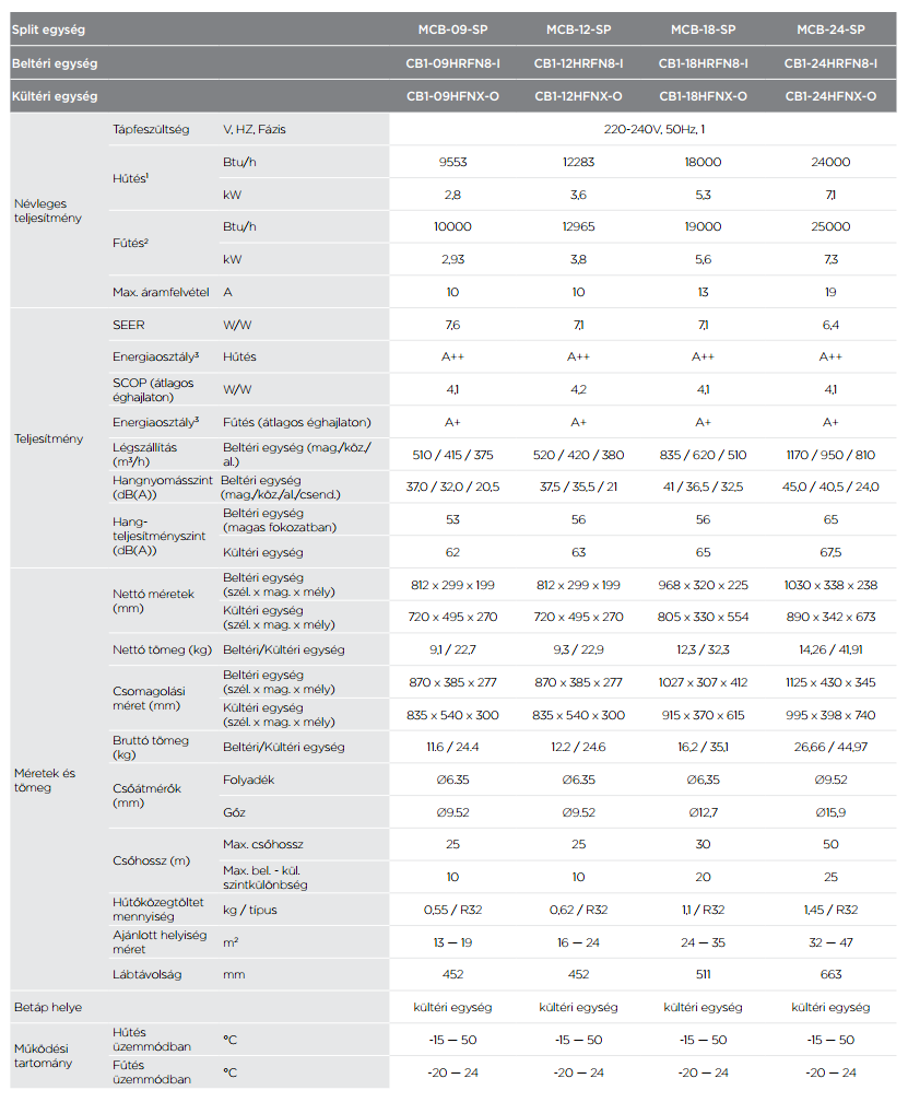 • Hűtő teljesítmény : 7,1 kW