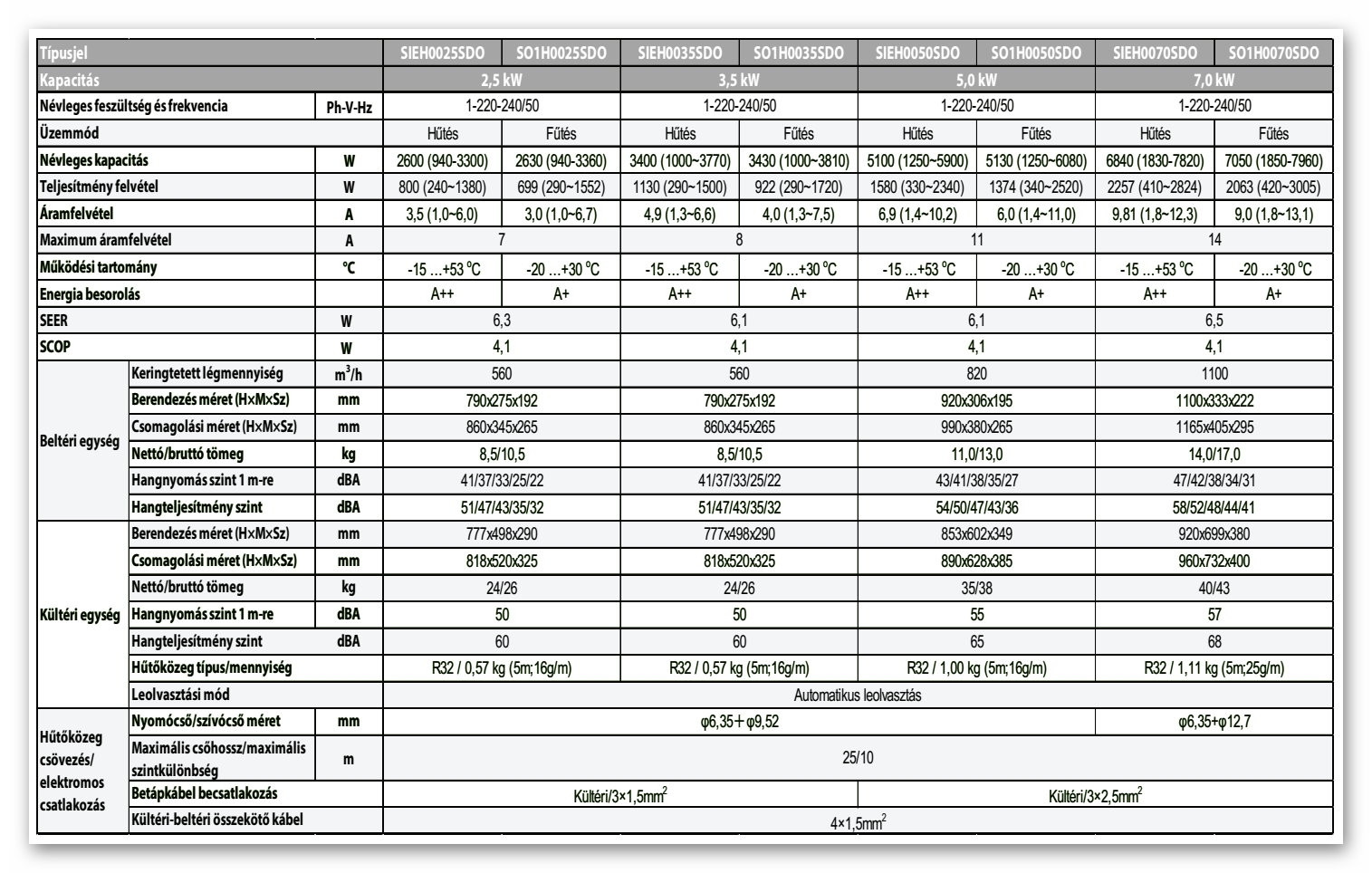 • Hűtő teljesítmény : 2,6 kW